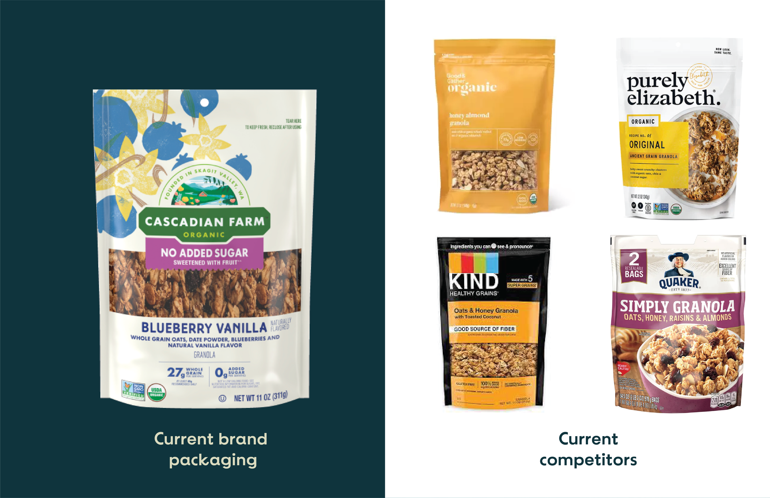 Design granola packaging in a way that will capture the attention of the consumer and come up with a variation and swag items that reflect the essence of the updated brand.
