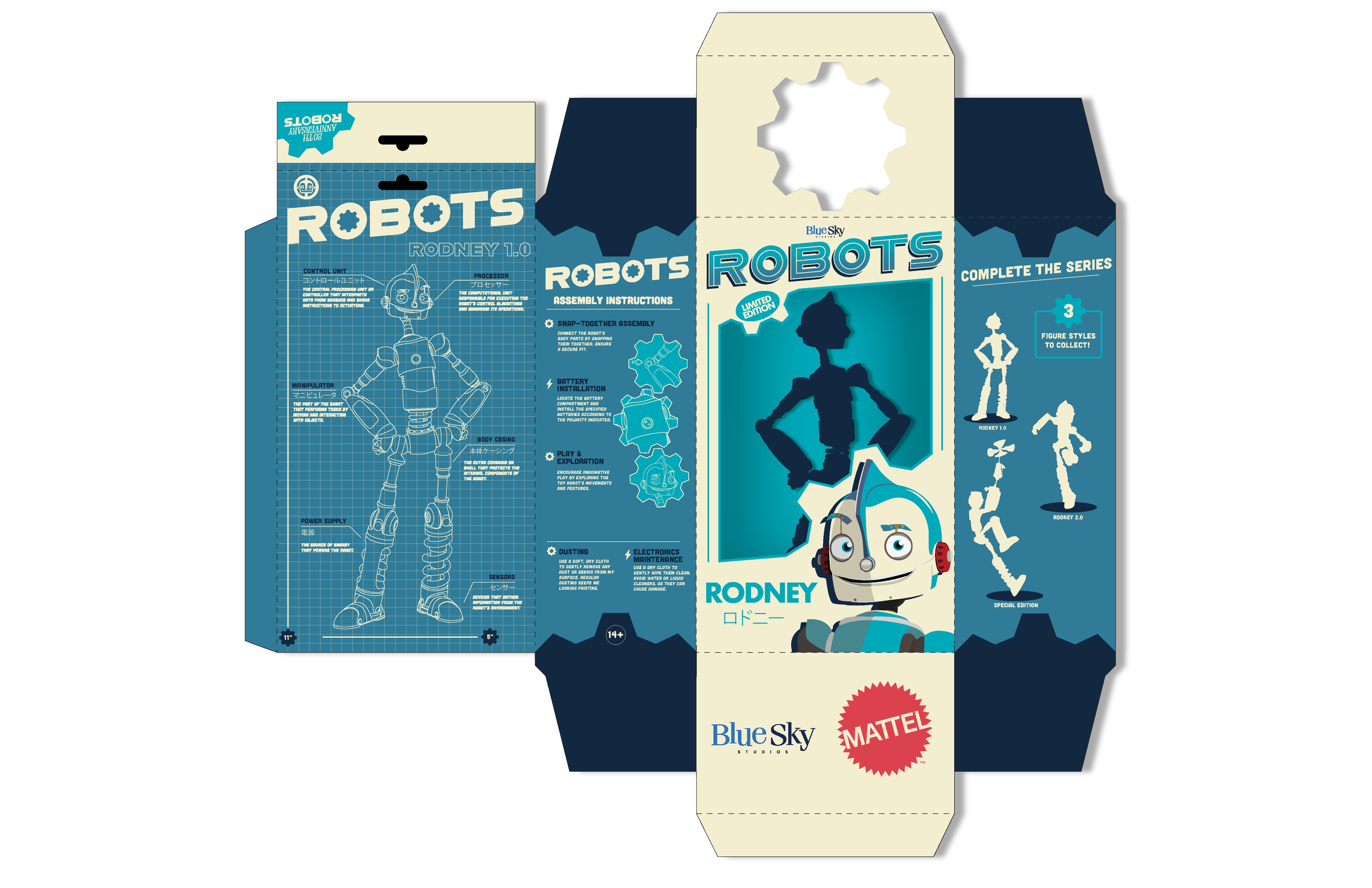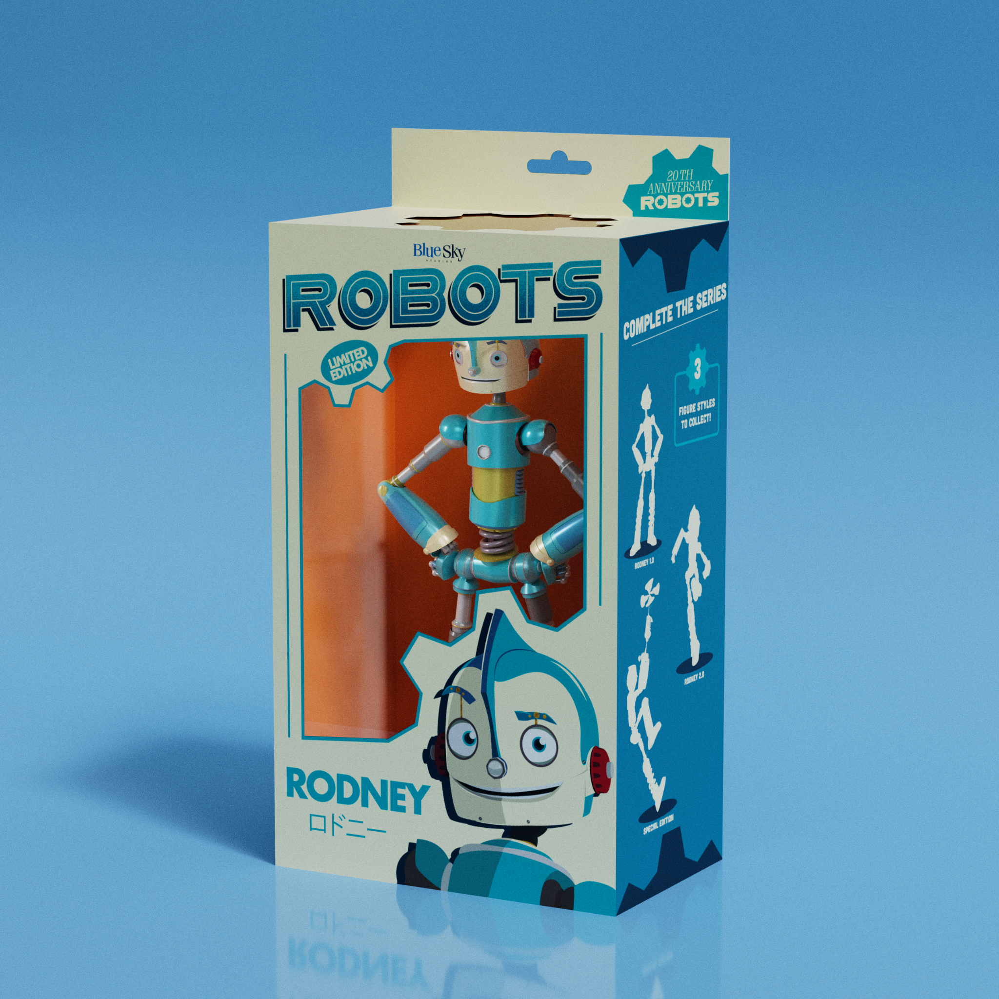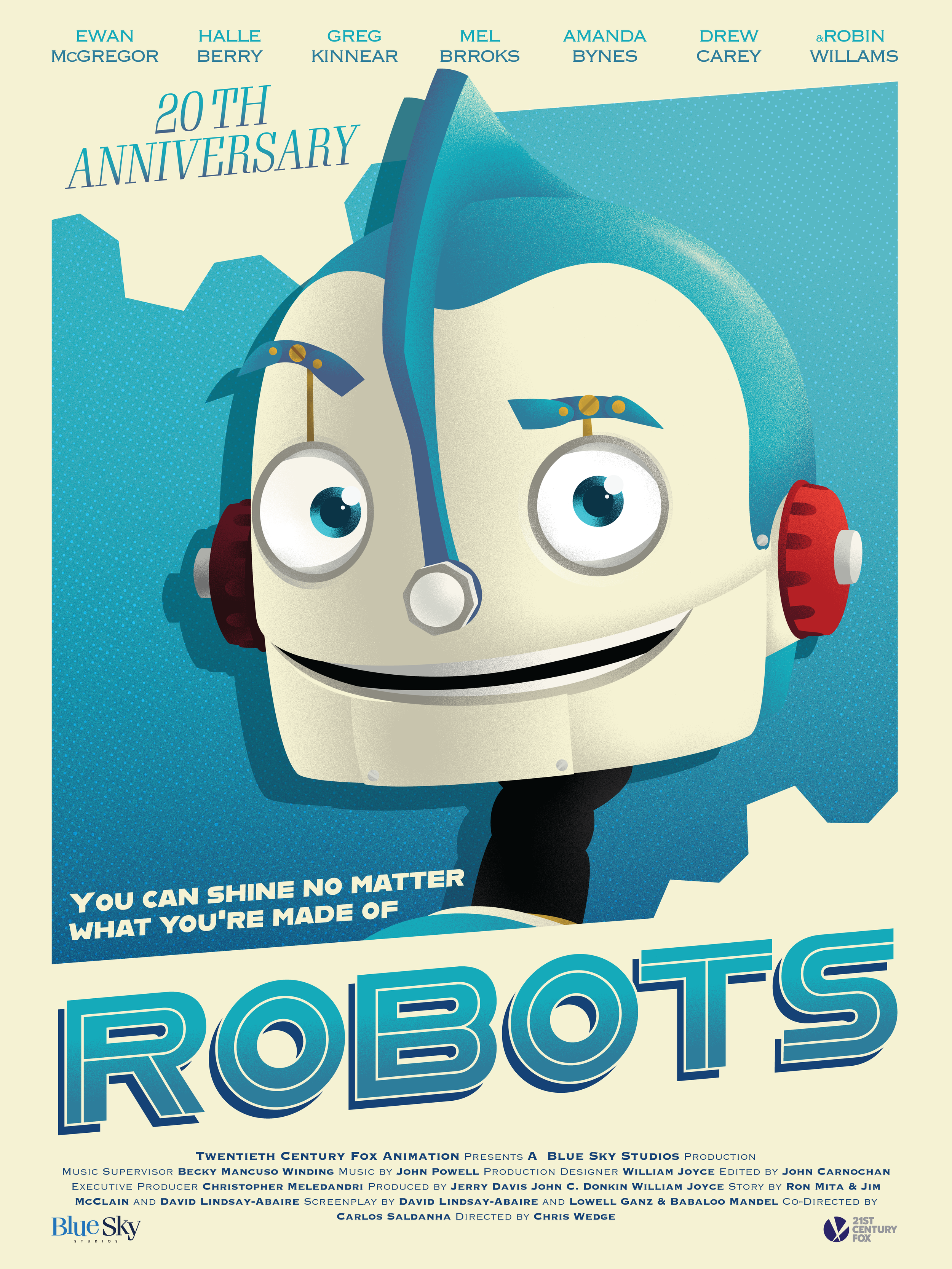 A campaign that celebrates the 20th anniversary of the Robots movie. The campaign includes a one-sheet poster, Teaser posters, animation, and a toy box for an advertising promotion.